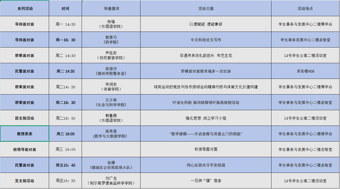 学生事务与发展中心第十六周活动预告