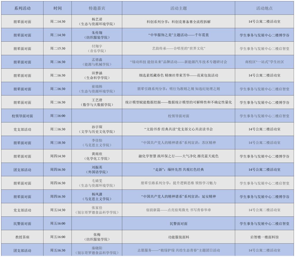 2025-2026学年第二学期“一站式”学生社区第五周活动预告